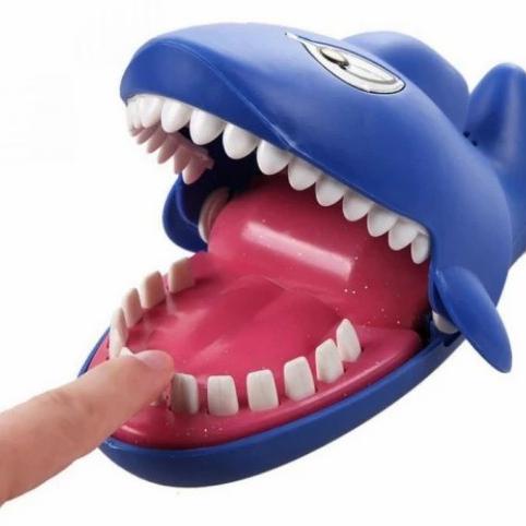 Games terbaru untuk anak usia 3+ edisi Shark dimana setiap pemain menekan gigi hiu saat terbuka secara bergantian, apabila tidak berhati-hati dalam menekan maka mulut hiu akan menutup secara mendadak, menggigit jari tangan dan membuat suasana menjadi terkejut atau kaget. Apabila beruntung maka mulut hiu tidak akan menutup dan apabila menutup dia dinyatakan gugur atau kalah. Anda tidak dapat memprediksi gigi mana yang benar atau salah karena posisi gigi akan berubah-ubah setiap game nya. Sensasi kaget dan menegangkan membuat permainan ini sangat seru. " Keunggulan " - Mainan hiu ini juga dapat mengeluarkan suara pada saat anda menekan gigi hiu dan juga lampu akan menyala pada saat anda menekan gigi yang salah. " Spesifikasi " Tipe Baterai : 2 X AA ( Not Included ) Dimensi : 220 X 125 X 90 Mm Warna : Biru / Random Membeli=setuju no retur & no komplain