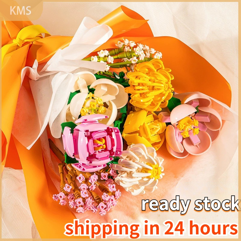 Detail Mainan Balok Bangunan Bentuk Buket Bunga Matahari Jasmine Kompatibel Dengan Rouse