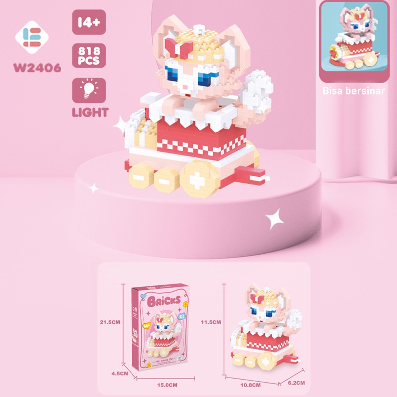 Detail Mainan Balok Susun Disney Series Linabelle Train Nano Block DIY 3D Puzzle Set Hadiah Pajangan