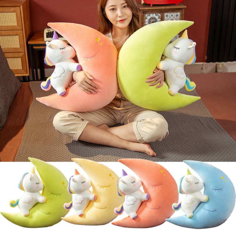 Dekorasi Rumah Hewan Bantal Sofa Mewah Unicorn 60cm Bulan Pendek Mainan Mewah Boneka Dekorasi Rumah Hewan 60cm