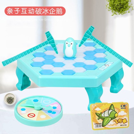 Mainan anak-anak, kecerdasan, 3 orang tua-anak, 4 permainan papan, merakit blok bangunan, memecahkan es, mengetuk es, penguin, 7 otak, lebih dari 6 tahun Cara Bermain -Jika Seorang Pemain Memukul sepotong balok ice dengan palu ,dan patungnya jatuh,maka pemain tersebut kalah SNI