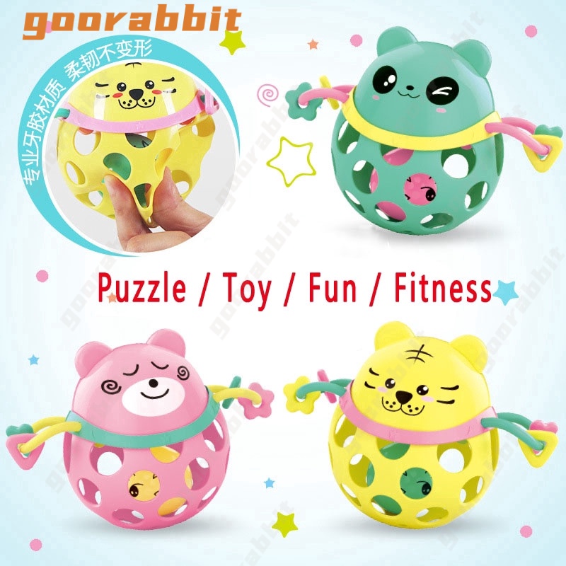 Detail Mainan Bola Rattle Teether Karet Lembut Motif Hewan Untuk Bayi 0-12 Bulan