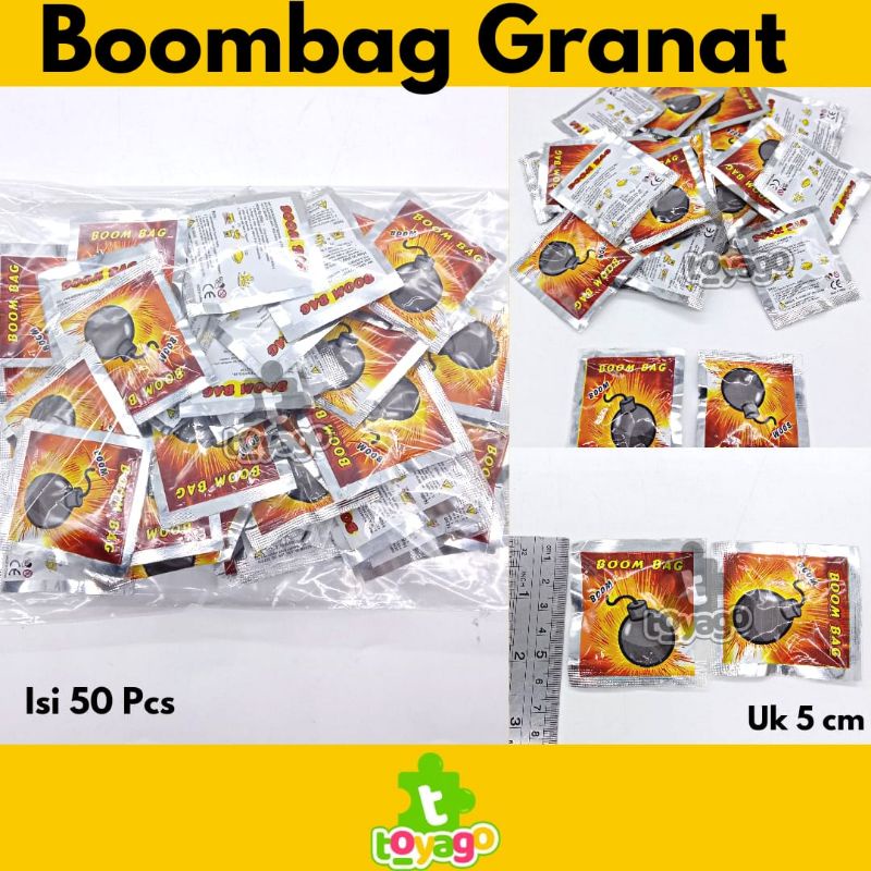 Nama : Boombag Granat Isi 1 ball : 50 Pcs Isi 1 dus = 200 ball x 50 Pcs Berat 500 gr/pak