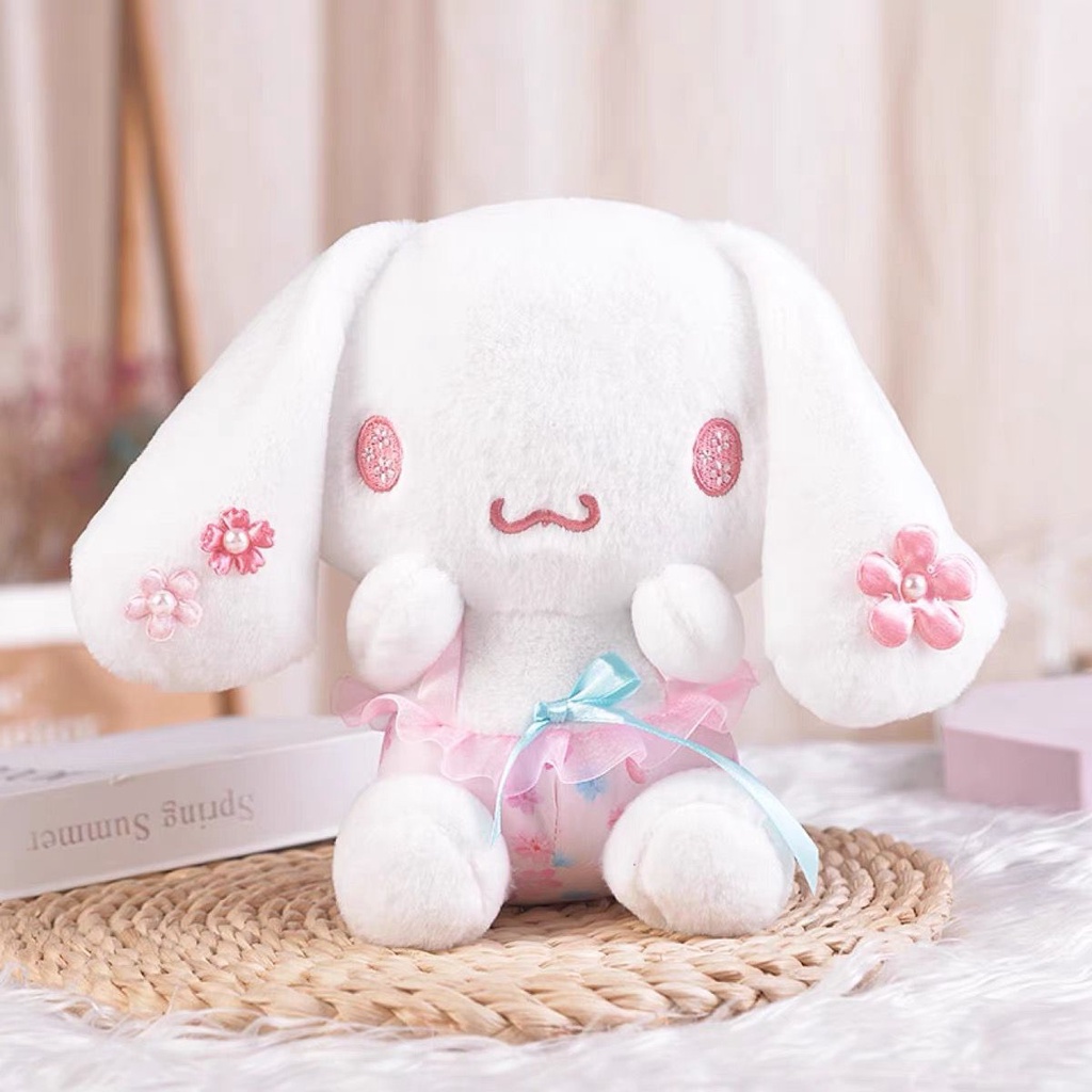 MAINAN BONEKA CINNAMOROLL KUROMI MELODY HELLO KITTY DRESS WHITE PINK FLOWER SERIES IMPOR