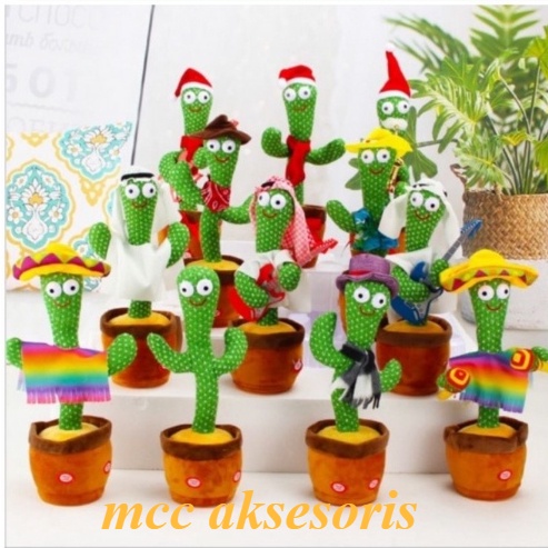 (LC) Mainan Bonek Kaktus LED Menari Bergoyang Rekam Suara