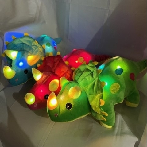 Mainan Boneka Karakter Baby Dino Bisa Nyala Ada Lampu Led nya Lampu Tidur Boneka Dinosaurus Triceratops Ukuran 40cm
