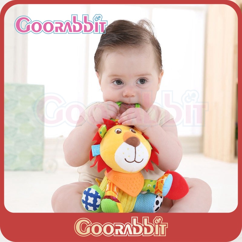 Detail Mainan Boneka Rattle Teether Bentuk Hewan Bahan Plush Lembut Multifungsi Untuk Bayi