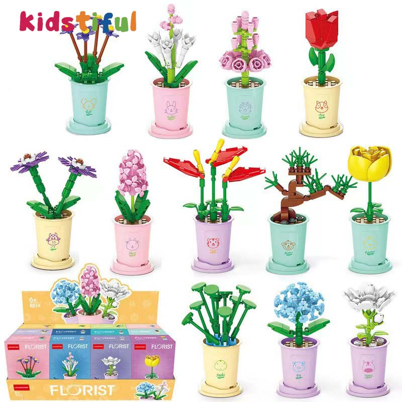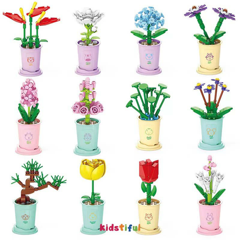 Mainan Bunga DIY Flower Block Zodiak Cina Pot Tanaman Buket Blok Bangunan Mainan Block Bricks Mini Mainan Edukatif Balok Mainan Anak Perempuan Mainan Edukasi 5 Tahun