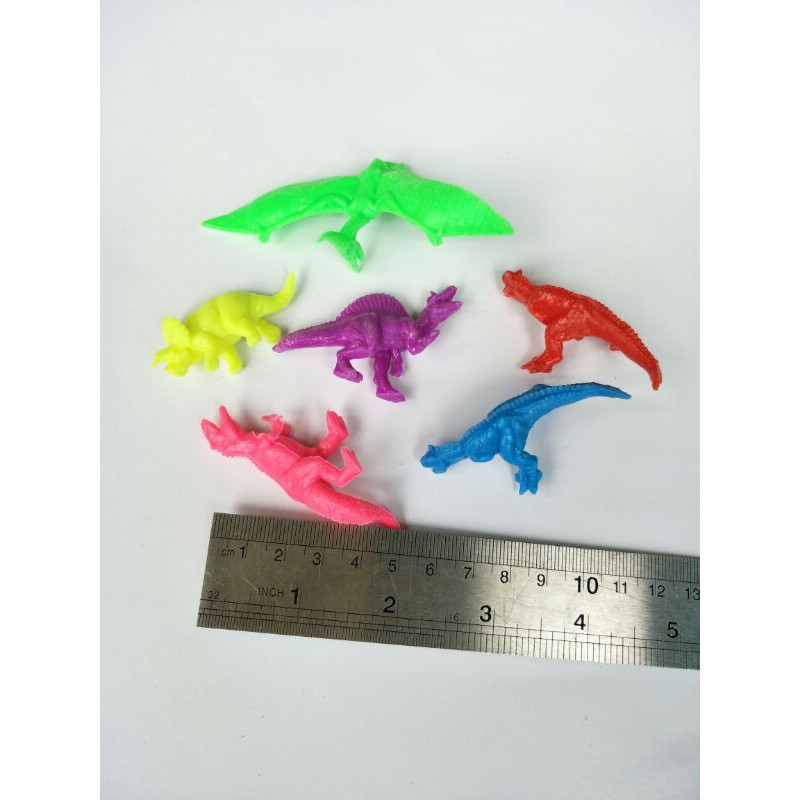 Harga tertera dapat 1set dino karet isi 6pcs warna/ model random campur ukuran figurin kira" 5cm