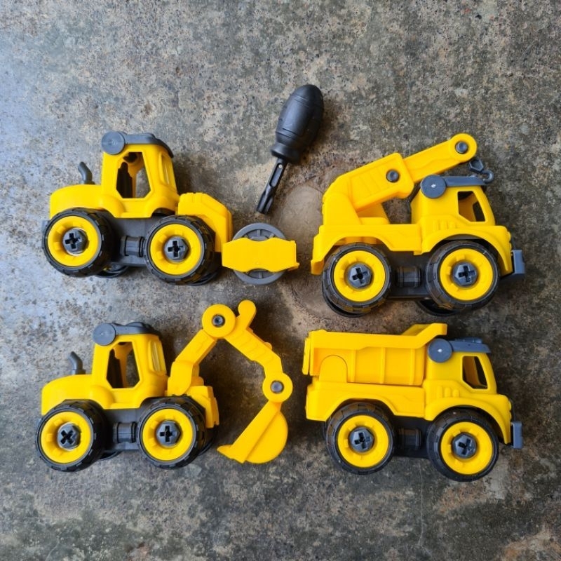 Mainan edukasi anak 4 in 1 DIY truck konstruksi alat berat bisa dibongkar pasang. Membongkar atau merakit sesuatu menjadi hal yang mengasyikkan untuk anak-anak. Mainan DIY Truck Konstruksi ini selain melatih koordinasi mata dan tangan, aktivitas ini juga bisa melatih kreativitas anak. Mainan ini bisa menyalurkan bakat anak dalam merakit sesuatu, memasangkan ke bentuk yang sesuai, dan juga melatih imajinasi anak.