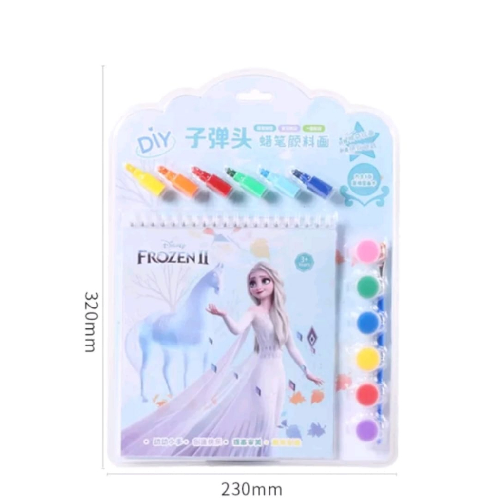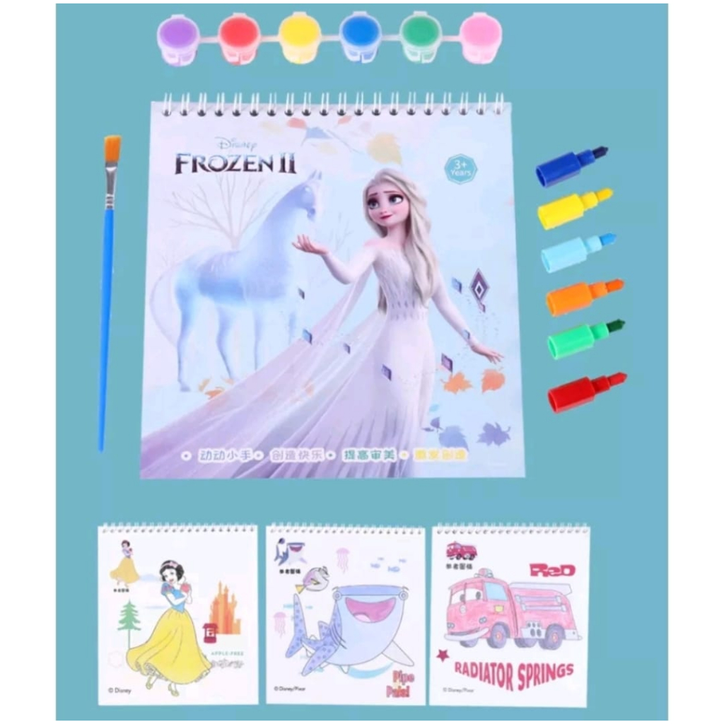 Buku gambar karakter DISNEY anak dengan 2 jenis cat untuk anak pilih.