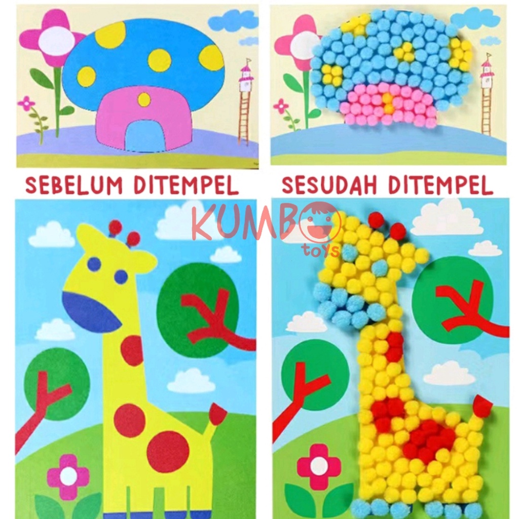 Detail Mainan Edukasi Anak DIY Menempel Pom Pom Prakarya Kerajinan Tangan
