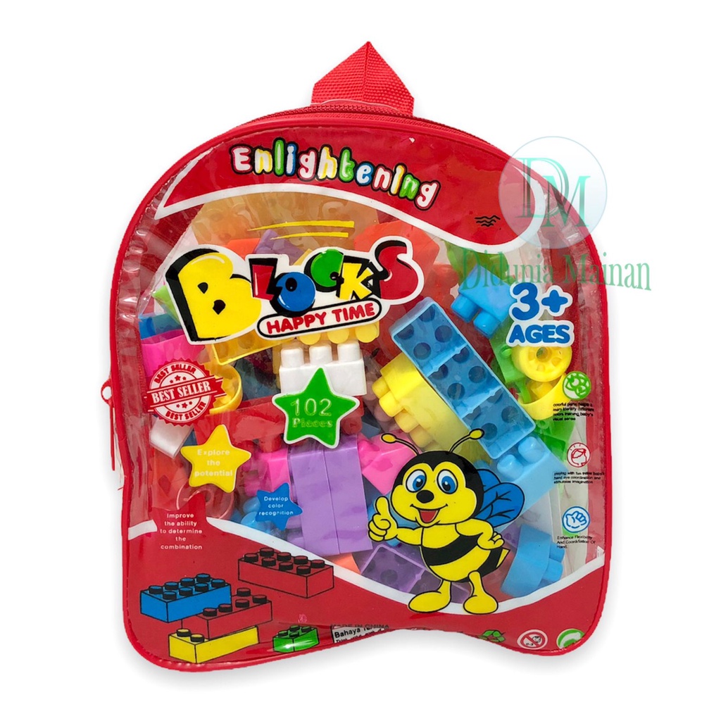 Detail Mainan edukasi anak happy time tas balok susun bongkar pasang set building bricks block isi 102 pcs