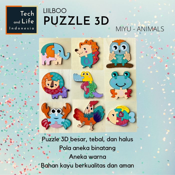 Fitur * Puzzle 3D besar, tebal, dan halus sehingga nyaman digenggam * Memperkenalkan aneka binatang * Aneka warna: bagus untuk perkembangan otak anak * Aman untuk anak: terbuat dari kayu berkualitas