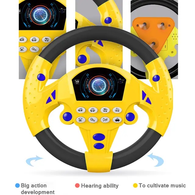 Mainan setir-setiran dapat membuat anak belajar mengendara dengan baik. Dimulai dengan menghidupkan mesin dan diakhiri dengan menekan tombol yang sama untuk mematikan (ON/OFF). Ada sen kiri dan kanan, klakson, suara sirine ambulan, suara mobil polisi, dan suara mobil pemadam. semua tombol disertai bunyi yang realistis. dilengkapi karet hisap jadi bisa dilekatkan pada kaca mobil.