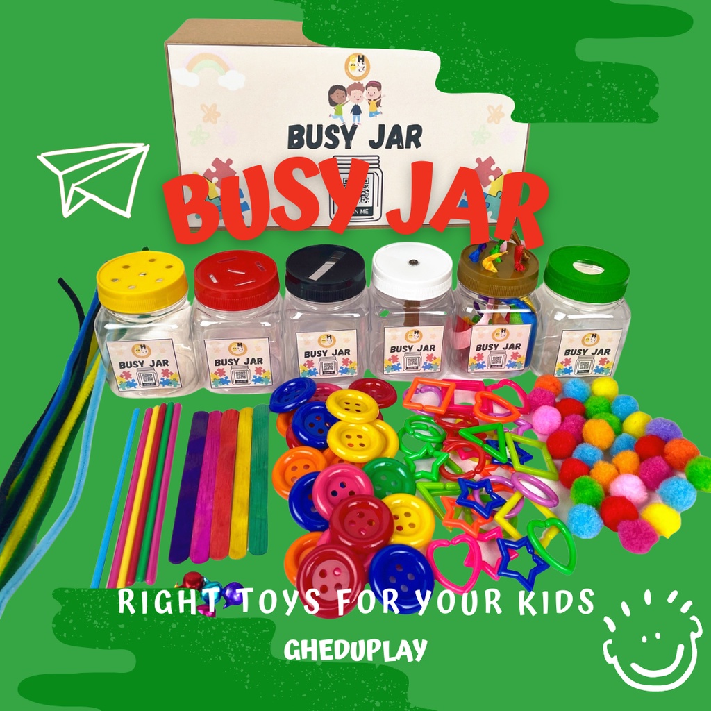 BUSY JAR merupakan permainan yang dapat melatih sensori & motorik anak, dapat dimainkan oleh anak mulai usia 6 bulan hingga usia 3 tahun