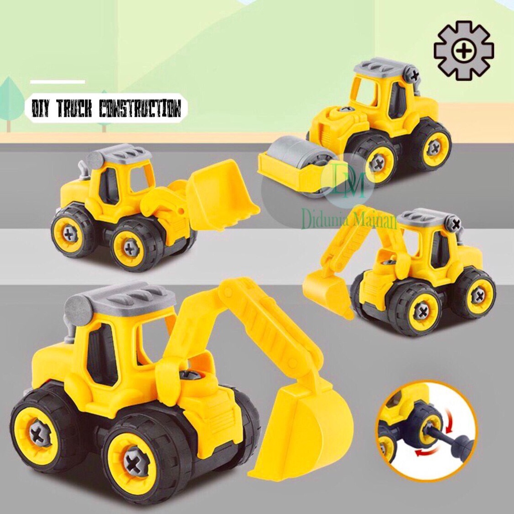 Detail Mainan edukasi mobil mobilan mekanik anak laki laki DIY bongkar pasang truck konstruksi set isi 4 pcs