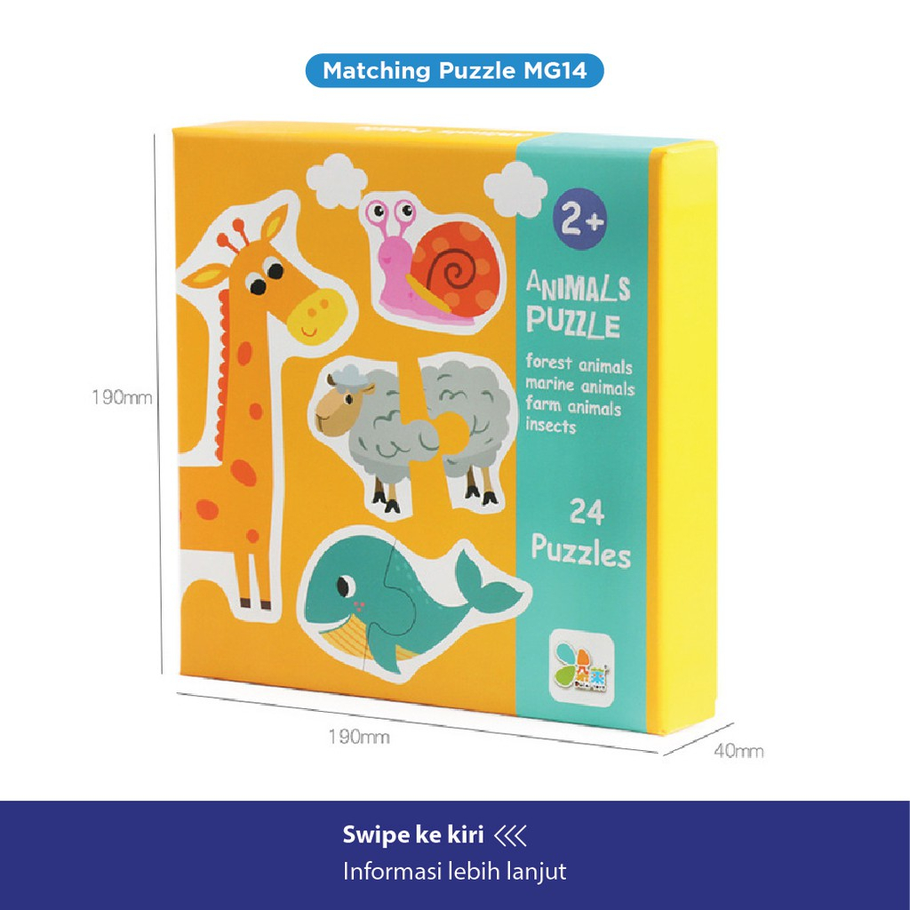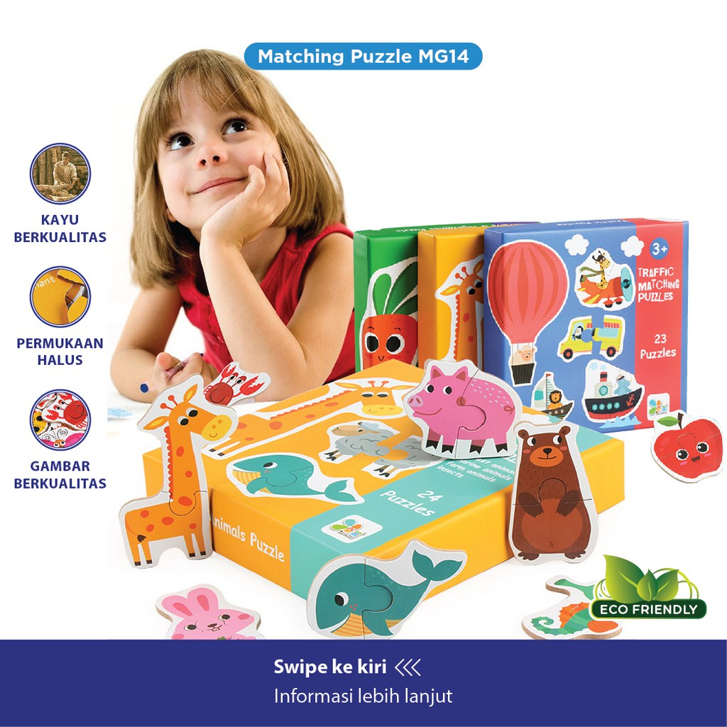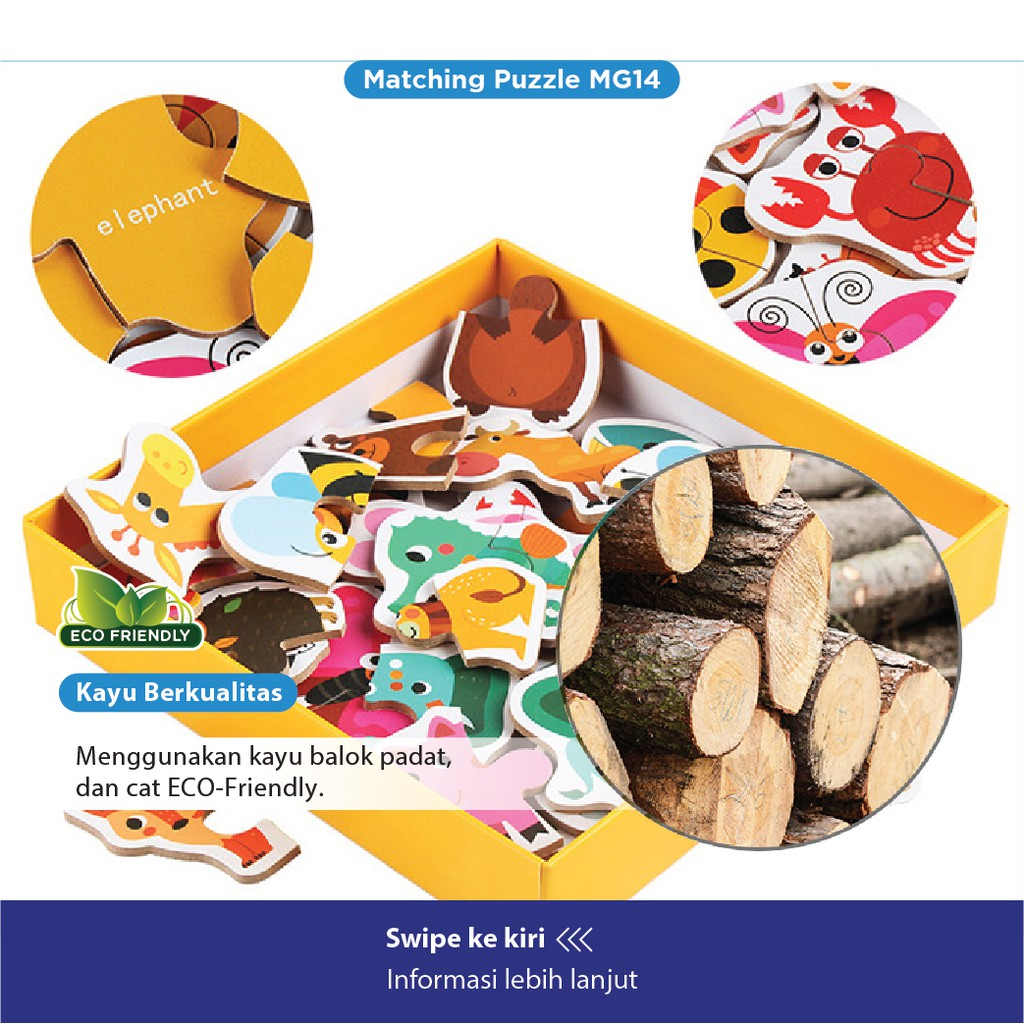 Keunggulan Matching Puzzle : - Kayu Berkualitas, mengunakan kayu balok padat, cat ECO-Friendly, serta memiliki gambar yang lucu dan bagus. - Permukaan Halus, menggunakan teknologi pemotong laser, hasil halus, dan tidak melukai tangan. - Gambar Berkualitas, kertas yang lembut, tidak tajam, dan gambar yang lucu dan jelas.