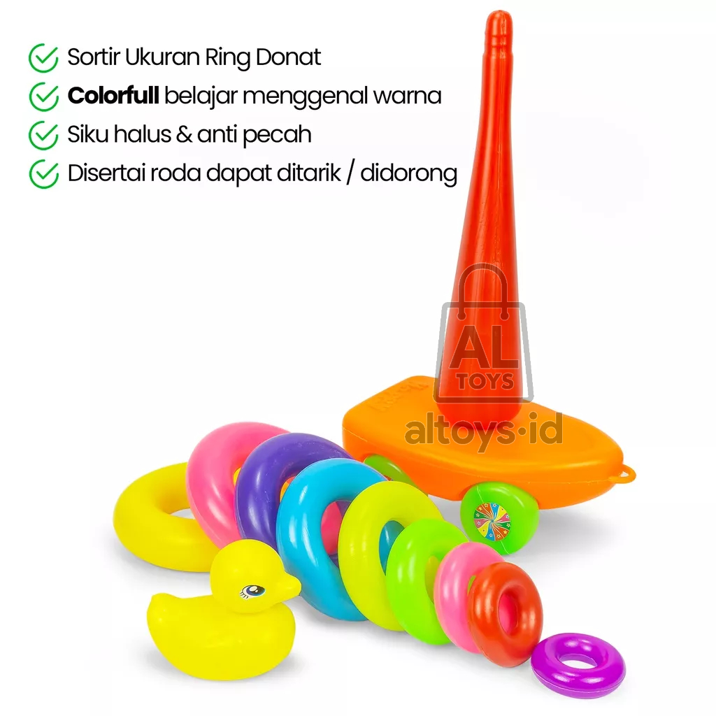 MAINAN EDUKASI RING DONAT BEBEK RODA RING 10 MAINAN SORTIR WARNA DAN UKURAN B446
