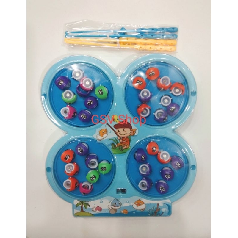 Mainan Fishing Game Magnet 4 Kolam Batrai