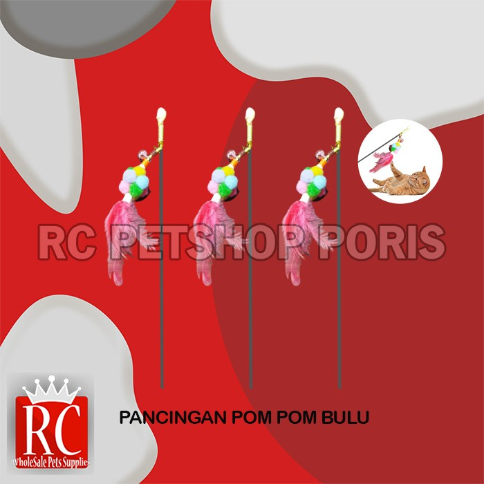 Mainan Hewan Kucing Pancingan Pom Pom Bulu Lonceng