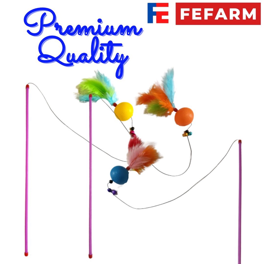 Detail Mainan Kucing Interaktif Tali Bola Bulu Tongkat tikus Bulu Bola Bulu Cat Teaser Premium Quality FEFARM