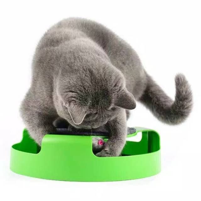 * Mainan interaktif kucing. * Membuat kucing kesayangan tidak stres dan bosan. * Terdapat 3 buah lubang dengan 1 ekor tikus untuk diuber uber ๐. * Diameter 25 cm. * Sangat cocok untuk anak kucing atau kucing dewasa. * Dapat dimainkan oleh beberapa kucing sekaligus. * Bagian atas terdapat karpet garuk kucing. * Tidak menggunakan baterai. * Dijamin cat lover pasti tersenyum melihat kesayangannya menguber tikus mainannya. * Tersedia Warna : - Hijau - Biru - Merah