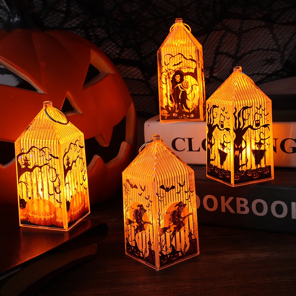 Detail Mainan Lampu Malam Tangan Kecil Portabel Halloween Untuk Anak-Anak/Labu Tengkorak Simulasi Api Lampu LED/Prop Dekorasi Pesta Halloween Tenaga Baterai/Lentera Lampu Malam Genggam