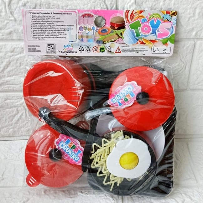 MAINAN ANAK MASAK MASAKAN MIE TELOR CEPLOK KOMPOR LM 9 Mainan Masak Masakan yg terdiri dari kompor pengorengan dan panci panci , sendok , indomie , telur dll (seperti pada gambar). Mainan edukasi yang digemari setiap anak bermain peran.