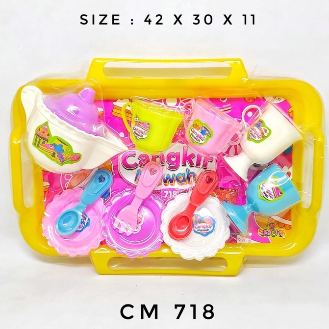 Mainan masak masakan berupa perlengkapan makan mainan dan teh set mainan yang dikemas dalam kemasan set dan ditata di atas nampan saji yang sangat cocok untuk melengkapi koleksi mainan buah hati kita. Kelengkapan model dan mainan yang dijual bisa dilihat di foto produk dan video produk.