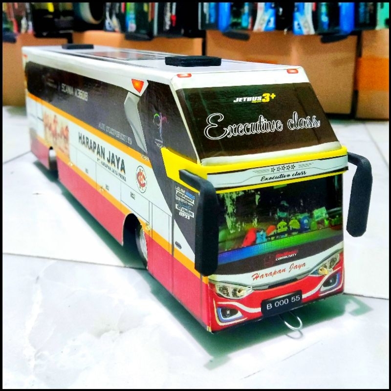 Miniatur Bus AKAP Telolet Basuri Harapan Jaya. Semua Varian Paket Pembelian Sudah Dilengkapi Lampu. Cocok untuk hadiah ulang tahun putra dan putri kesayangan , Keponakan Tercinta atau mungkin sekedar dikoleksi