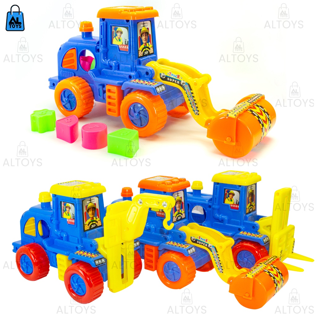 Mainan Mobil Konstruksi Dengan Shape Shorter Mainan Menggenal Bentuk bermain mobil kontruksi juga di lengkapi dengan berbagai bentuk shape dasar, shape dapat di simpan di dalam mobil.