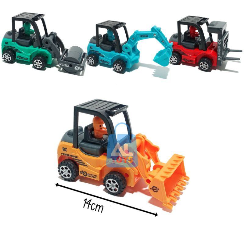 Detail Mainan Mobil Konstruksi Power Truck Set Isi 4pcs Exsavator / Forklip / Bulldozer / Slinder