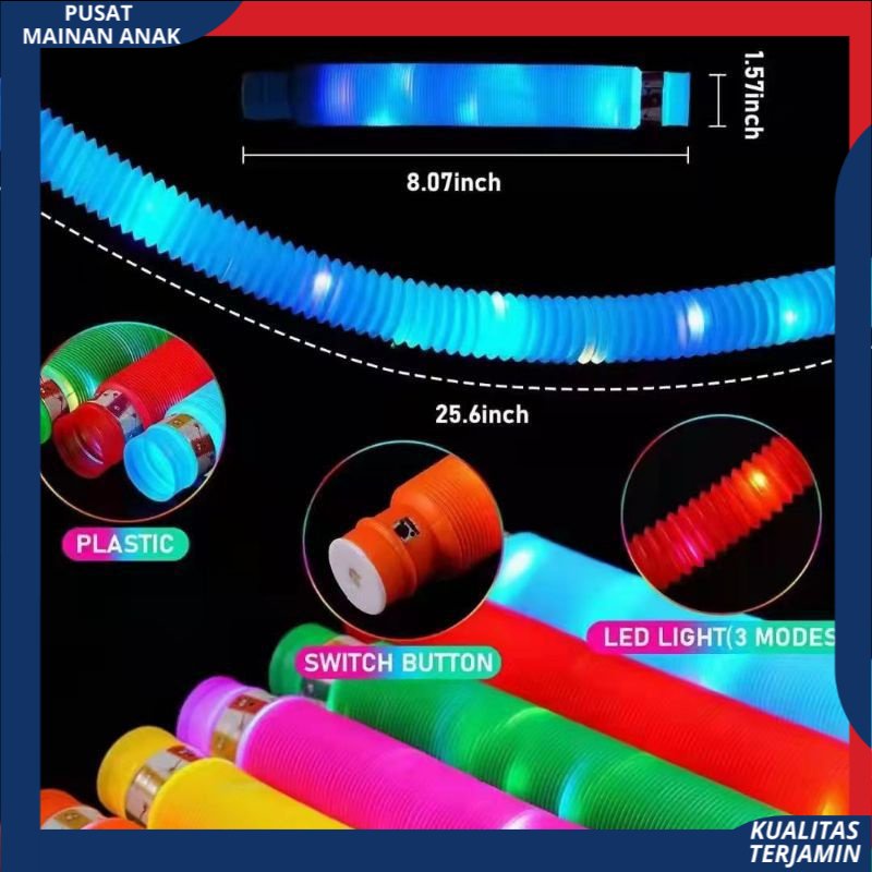 mainan pipa lampu Pop Pipes / Mainan Lampu Stick Pipa Selang Fidget Toy / Mainan Viral CEV Light Up Pop Tubes