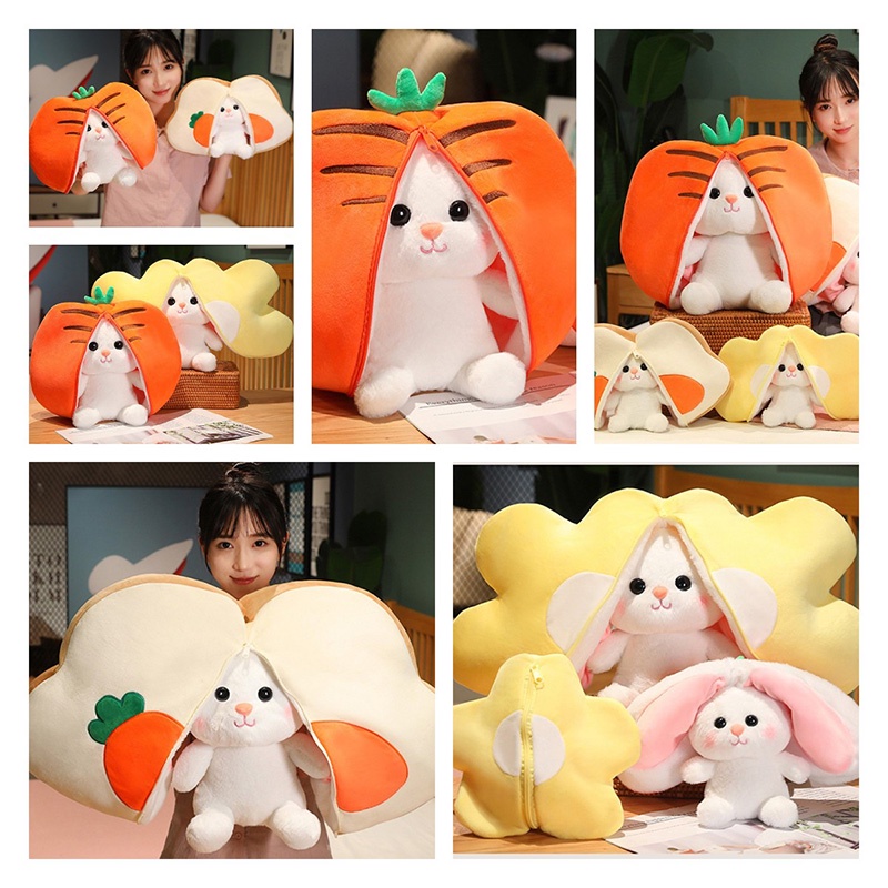 Kelinci Berbentuk Bunga Mainan Mewah Kelinci Transformasi Bantal Boneka Hadiah Anak Hadiah Berbentuk Bunga Mainan Mewah Wortel Bantal Transformasi Boneka Hadiah Anak