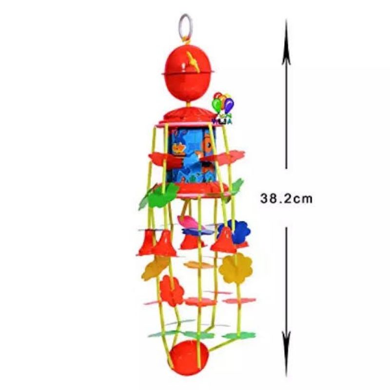 Mainan Merry Go Round. Mainan ini cocok untuk melatih penglihatan bayi karena warna dan gerakan berputarnya menarik perhatian bagi bayi, juga berfungsi untuk merangsang kemampuan motorik kasar & halus bayi. Selain itu juga mengeluarkan suara musik yang dapat melatih pendengaran bayi. Mainan ini bisa digantung diatas tempat tidur bayi. Beroperasi tanpa menggunakan baterai, tapi dengan cara diiputar tuasnya searah jarum jam, lalu lepas, maka mainan ini akan berputar dengan diiringi musik yang bisa menarik perhatian bayi. Ukuran Box : 24,5 x 9,5 x 9,5 cm