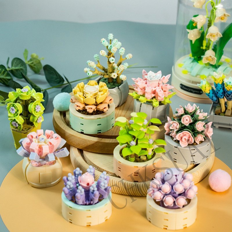 Detail Mainan Puzzle Rakitan Balok Bangunan Buket Bunga Mawar Sakura Lily Kreatif DIY Untuk Hadiah Valentine