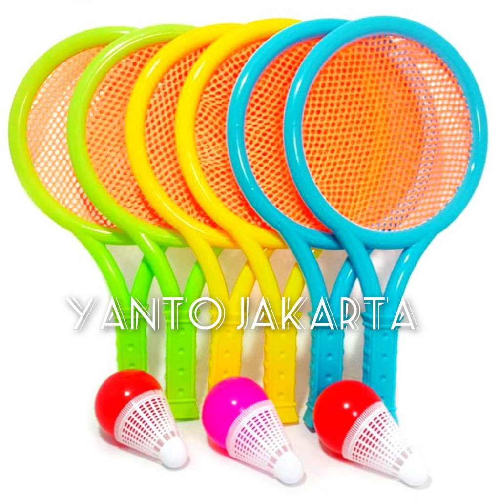 Deskripsi : - terdapat 2 buah raket, 1 Bola plastik , dan 1 shuttlecock Plastik - Jaring Raket terbuat dari bahan Jaring Kain - Raket Terbuat dari bahan Plastik - Diameter Jaring Karet sekitar18cm - Panjang Raket sekitar 38cm