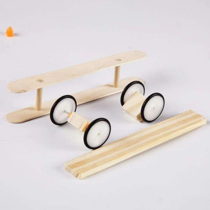 Mainan ini melatih anak mulai dari perakitan mesin pesawat, bentuk pesawat, hingga cara pengoperasiannya. anak juga di harapkan dapat pengetahuan dasar tentang motor dinamo. Body utama pesawat mainan ini terbuat dari kayu, hal menarik dari pesawat kayu ini ialah membebaskan anak anda untuk berekplorasi dalam mewarnai hasil karya rakitan mereka, kayu ini juga bisa di cat menggunakan cat air dan spidol. Mainan pesawat in itidak bisa terbang hanya dapat berjalan di tanah.