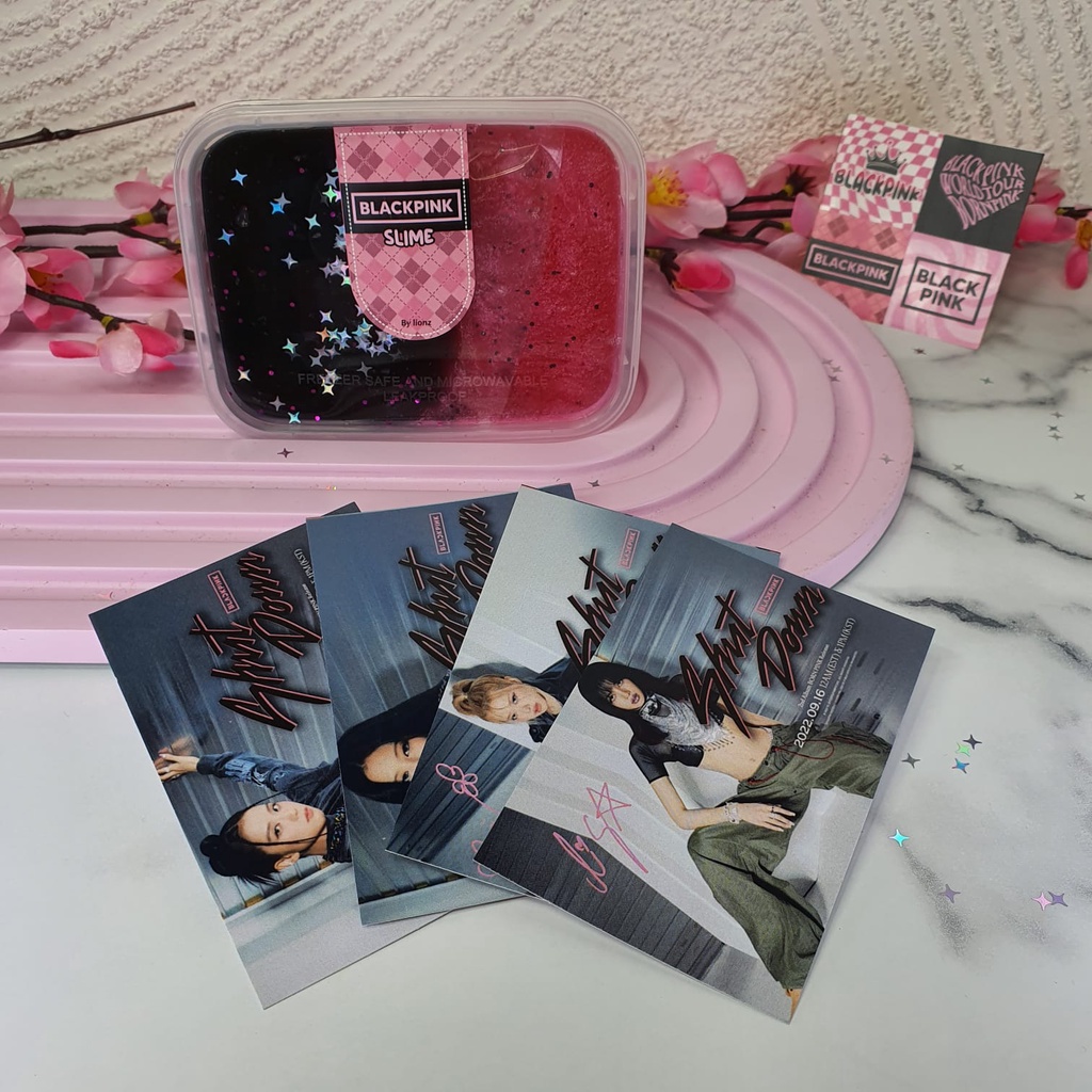 ✔Clicky ✔Holdable ✔Fun to play ✔Smells Good (aroma premium) ✔ Terdapat pemisah plastik di tengah slime agar tidak tercampur ✔ free set foto card Blackpink dan stiker Blackpink