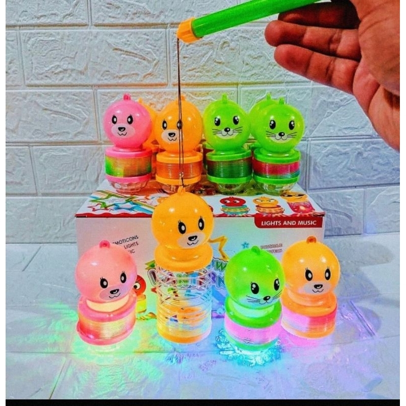 Mainan spring rainbow lentera dengan lampu LED menyala di dalamnya.