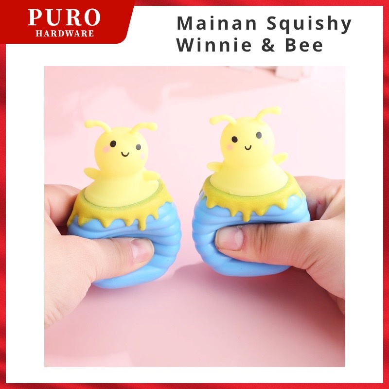 Detail Mainan Squishy Winnie The Pooh & Bee Pop it Karet Silikon Balon Silicone Pencet Lentur Aman Promo mitra