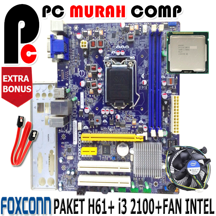 Mainboard Intel LGA 1155 H61 Dengan Processor i3 2100
