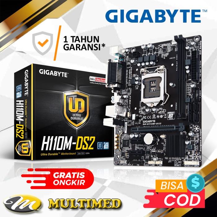 Mainboard Motherboard Mobo LGA 1151 H110M DDR4 Merk Gigabyte / ASUS Seri GA-H110M-DS2 / H110M-K Support Processor G, Core i3, Core i5, Core i7 Generasi ke 6 dan 7 Support Maksimal RAM 32GB DDR4 2400/2133 MHz Onboard Video Chipset : Integrated Graphics Processor Audio Chipset : Realtek ALC887 LAN Chipset : Realtek GbE LAN chip Rear Panel Ports : 1 x PS/2 mouse port, 1 x PS/2 Keyboard port, 1 x parallel port, 1 x serial port, 1 x D-Sub port, 2 x USB 3.0/2.0 ports, 2 x USB 2.0/1.1 ports, 1 x RJ-45 port, 3 x audio jacks (Line In, Line Out, Mic In) Form Factor : Micro ATX (22.6cm x 17.4cm)