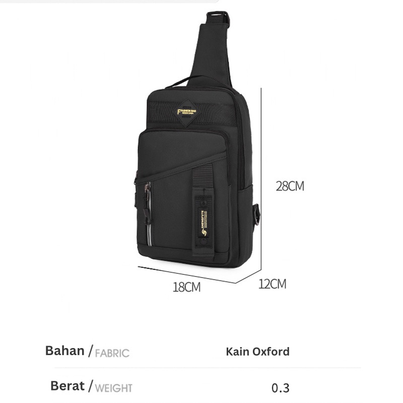 Fitur Tas : - Terbuat dari bahan Kain Oxford - Terdiri dari 1 Kolom utama dan 2 kolom Aksesoris - Tali Selempang yang dapat di atur panjang - Terdapat port usb