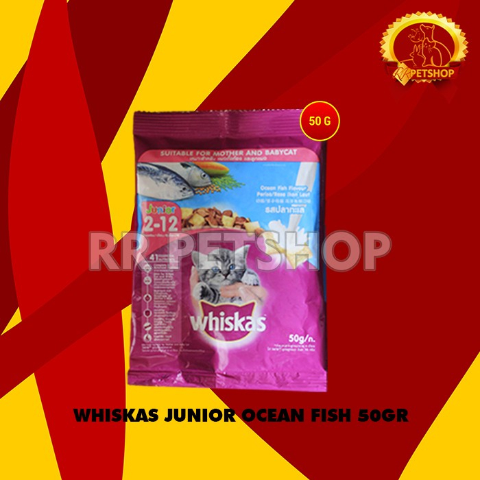 WHISKAS JUNIOR adalah makanan kucing khusus disiapakan untuk memberikan rasa yang lezat dan nutrisi lengkap dan seimbang 100% untuk semua tahapan hidup kucing anda. WHISKAS telah dibuat campuran sempurna kibbles ayam dan rasa kalkun, ganda-basted dan dengan cahaya dan tekstur renyah. kucing tidak bisa menahan mengosongkan mangkuk mereka untuk mencapatkan bit bit lezat dengan kerang renyah luar dan lembut yang kaya rasa ini.