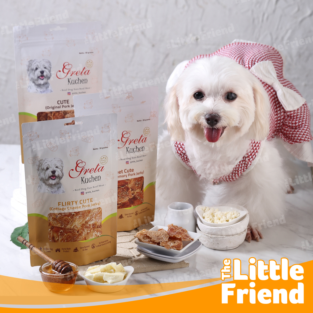 Varian GRETA dengan KEMASAN TERBARU 1. Chicken Jerky Original 2. Chicken Jerky Carrot 3. Chicken Jerky Buah Naga 4. Chicken Jerky Spirulina 5. Chicken Jerky Pisang 6. Chicken Jerky Ubi 7. Chicken Jerky Labu 8. Chicken Jerky Madu 9. Chicken Jerky Keju Cottage 10. Chicken Peanut Butter 11. Original Pork Jerky 12. Cheese Pork 13. Original Beef Jerky 14. Mix 3 in 1 (Beef, Pork, Chicken)