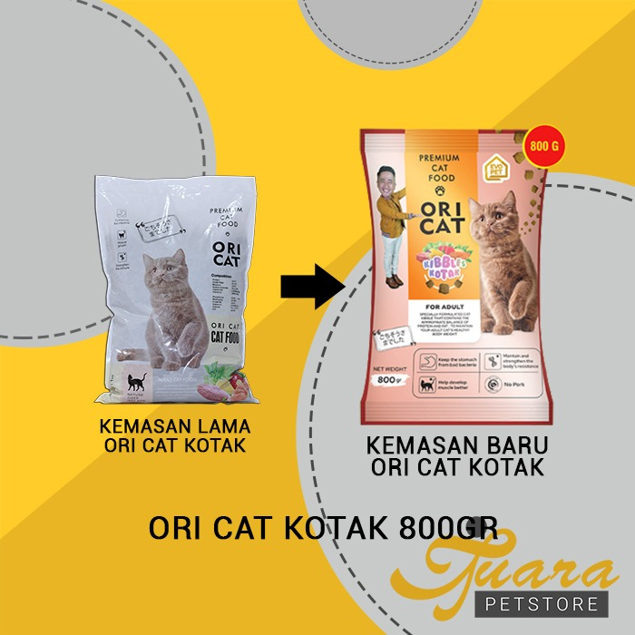 Makanan kucing Ori cat makanan premium dengan segala kandungan nutrisi, mineral, vitamin dan kaya serat tinggi diformulasikan untuk kucing dewasa dan kitten