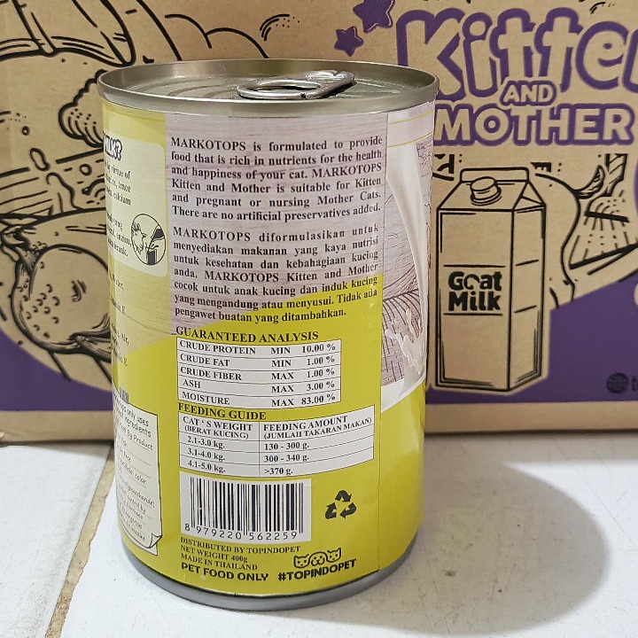 Markotop kitten mother kaleng 400gram dengan ekstra kandungan susu kambing