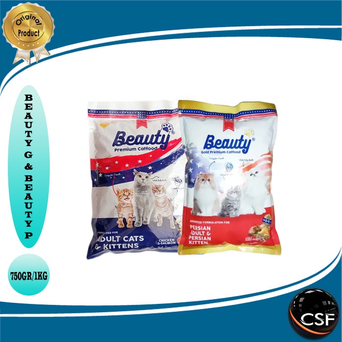 Makanan Kucing Murah BEAUTY Premium & BEAUTY Gold for Adult & Kitten 7kg ( EKSPEDISI ) Bisa untuk kitten & Adult. 1. Beauty premium 1kg (7 Pcs) 2. Beauty gold 750gr (7Pcs)